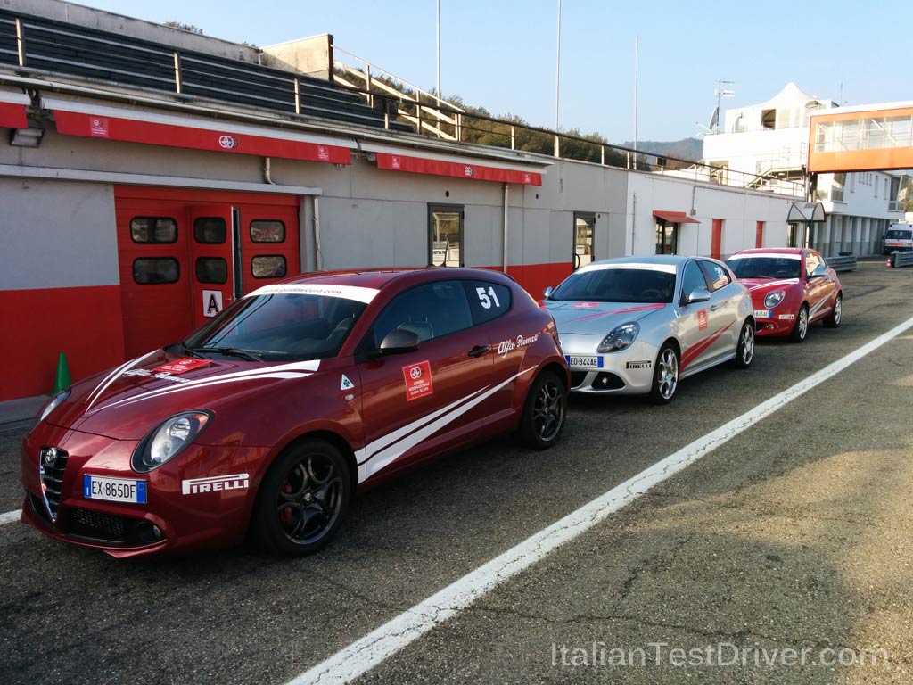 Al termine della prima prova, si torna in pista con la Mito Quadrifoglio Verde e la Giulietta Quadrifoglio verde, quattro giri per ogni vetture sempre più al limite. Giro dopo giro si inizia a prendere confidenza non solo con il tracciato, ma anche con le vetture, frenando sempre più al limite e migliorando la percorrenza e l’accelerazione in uscita di curva. La MiTo QV ha un comportamento molto buono su pista, sia come tenuta che come agilità, anche se il cambio TCT in modalità automatica non sempre riesce a soddisfare le esigenze rispetto alla modalità manuale. Il cambio infatti scala le marce in accelerazione anche quando non serve, togliendo progressione e potenza. La Giulietta QV invece è incollata all’asfalto, non si scompone in nessun caso ed offre prestazioni ottime ed una spinta costante, insieme ad un cambio TCT che anche in modalità automatica è decisamente più pronto e “intelligente” rispetto a quello della MiTo.