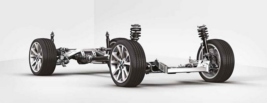 La nuova Bmw Serie 1 utilizza un nuovo pianale, ottenuto accorciando la piattaforma della nuova Bmw Serie 3 (sigla di progetto F30) che debutterà tra qualche mese. Il motore è montato trasversalmente e la vettura è l’unica della categoria ad utilizzare la trazione posteriore. La vettura inoltre utilizza una nuova tipologia di sterzo elettromeccanico “variabile”. Rispetto ai sistemi tradizionali con angolo di sterzo costante, lo sterzo sportivo variabile dispone di una trasmissione elevata nella posizione centrale ed una trasmissione bassa nelle restanti posizioni. Quindi, da un estremo all’altro, bastano appena due giri del volante e basta un piccolo angolo di sterzata per curvare o parcheggiare rapidamente. Lo sterzo sportivo variabile consente inoltre una maggiore stabilità della traiettoria e una elevata precisione, migliorando handling e sportività . Le sospensioni anteriori adottano lo schema McPherson in Alluminio mentre al posteriore vi è un ottimo multilink a 5 bracci. L’assetto è stato migliorato per assorbire meglio le asperità stradali e rendere la vettura meno rigida. Gli schemi sospensivi della nuova Bmw Serie 1 sono i seguenti: