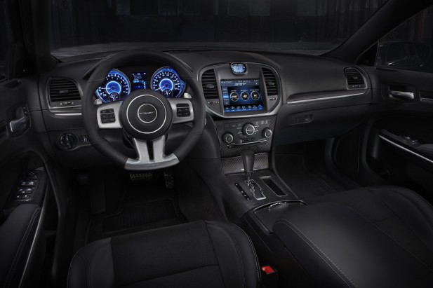Gli interni della Chrysler 300 SRT-8 sono stati resi più sportivi grazie ad inserti in fibra di carbonio su plancia e pannelli porta, pedaliera in alluminio e al volante tagliato nella zona inferiore. I sedili avvolgenti e contenitivi sono rivestiti in pelle Nappa, con il logo SRT inserito su schienali, volante, strumentazione e display centrale. Nella parte centrale della plancia troviamo uno schermo da 8,4 pollici che permette di visualizzare le prestazioni generali della vettura, come accelerazione laterale, pressioni, temperature e grado di sterzata, la coppia erogata e la distanza di frenata.