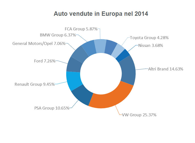 Nel 2014, il marchio più venduto in Europa è Volkswagen, con 1,62 milioni di auto vendute ed una quota di mercato del 25,37%.