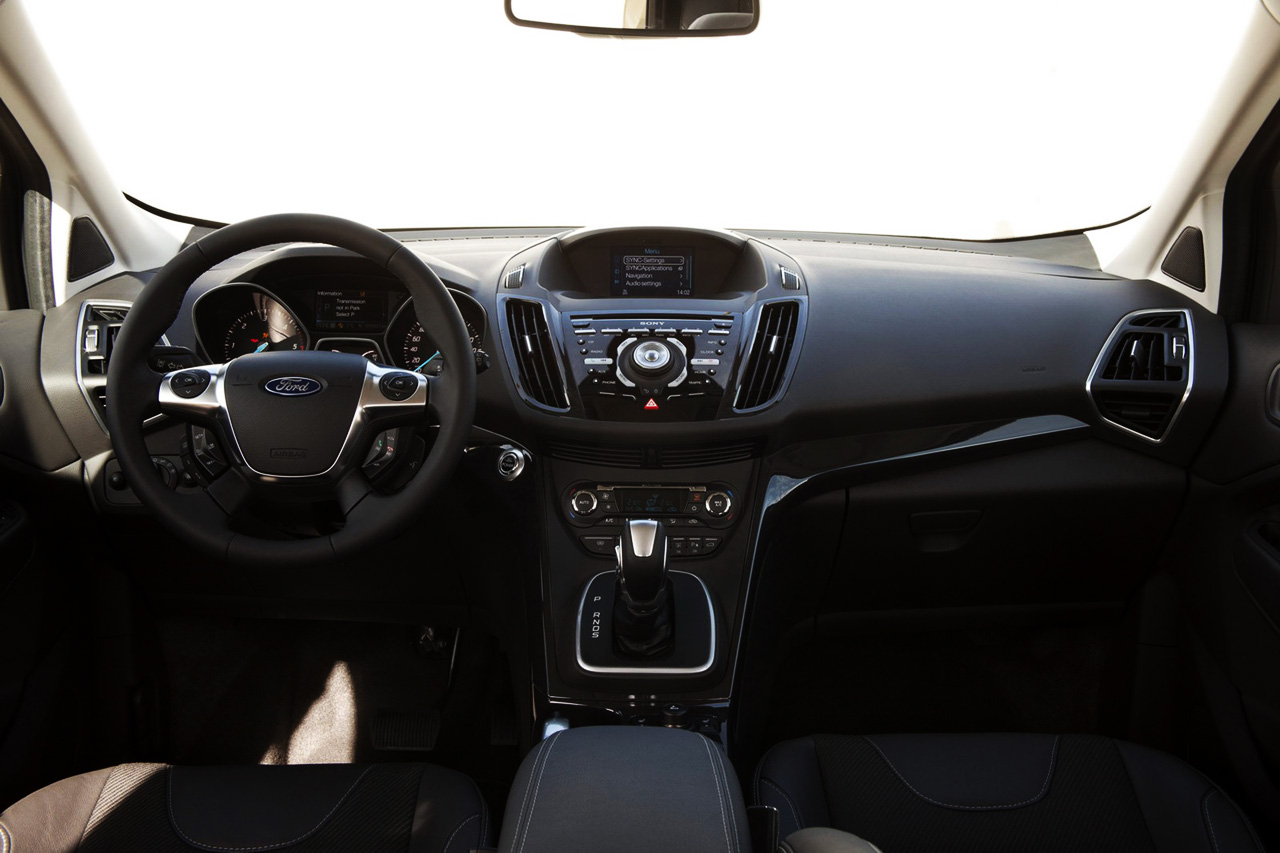 Gli interni della nuova Kuga sono stati migliorati sia dal punto di vista del design che dal punto di vista della qualità. Lo stile dell’abitacolo e della plancia riprende lo stile di Focus e Fiesta, con una plancia futuristica piena di pulsanti. I sedili sono di buona fattura così come le plastiche in generale. Il passo generoso della SUV permette anche ai passeggeri al posteriore di godere di un ottimo comfort. Il computer di bordo centrale mostra in tempo reale la ripartizione della potenza e della coppia alle ruote. Particolare attenzione è stata rivolta alla rimozione dei cardini e delle cerniere delle portiere a vista, eliminando questa imperfezione visiva dal portellone posteriore del bagagliaio, dalle alette parasole e dal vano portaoggetti. Per dare maggior luminosità all’abitacolo è disponibile inoltre un ampio tetto panoramico, che in caso di forte luce esterna è anche oscurabile.