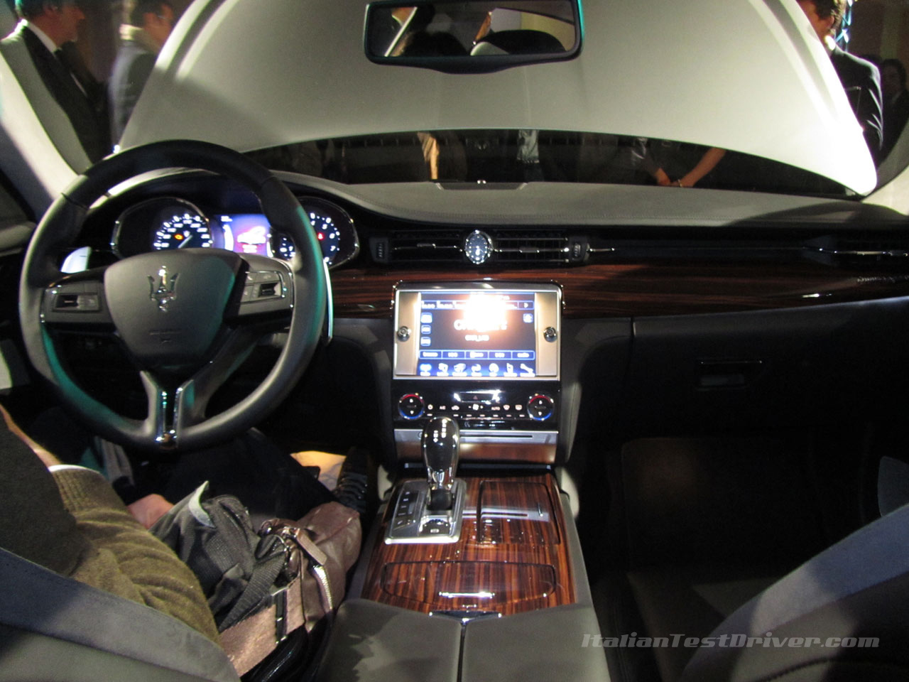 Gli interni della nuova Quattroporte sono semplici ed eleganti. Plancia e tunnel centrale sono rivestiti in radica ed offrono un design estremamente pulito e lineare. Il tunnel centrale offre inoltre ben tre vani portaoggetti, attivabili tramite appositi pulsanti nascosti. Di grande impatto il volante con il logo del Tridente al centro ed il cruscotto composto da de elementi circolari analogici ed un grande schermo a LED per il computer di bordo. Nella parte centrale della plancia è inserito un grande schermo da 8,4 pollici per il sistema di infotainment Maserati Touch Control, il quale offre anche la funzione hotspot WiFi. Appena sopra il sistema di infotainment è stato inserito l’orologio analogico Maserati, hotspot WiFi, mentre l’impianto audio è il premium surround Bowers and Wilkins con 15 altoparlanti. Molto comodi ed ergonomici i sedili in pelle, caratterizzati dal Tridente sui poggiatesta. Al posteriore lo spazio è davvero abbondante, con oltre 30 cm di spazio per le gambe dei passeggeri. Grazie al climatizzatore quadrizona, anche i passeggeri posteriori possono impostare la temperatura che preferiscono e, abbassando lo schienale del divanetto centrale posteriore, si ottiene un comodo poggiagomiti con portabibite. Il bagagliaio è molto capiente ed offre una capacità di 530 litri. La nuova Maserati Quattroporte offre una qualità nelle finiture e nei materiali molto elevata, riuscendo a fondere perfettamente eleganza, sportività e semplicità.