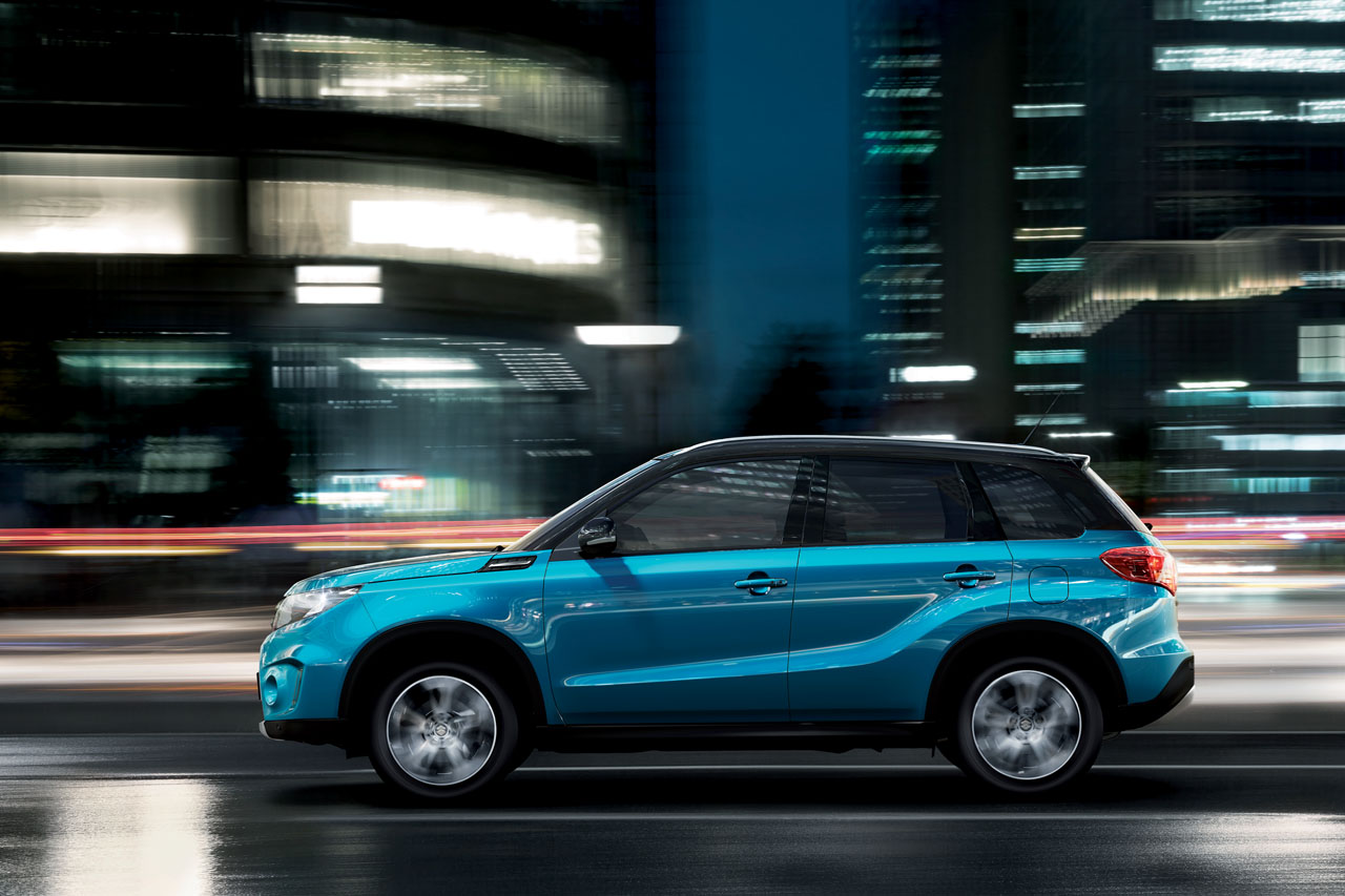 Fin dal suo debutto sul mercato nel 1988, la Suzuki Vitara ha guadagnato ampi consensi grazie al suo stile, al design, alle dimensioni compatte idonee ad un impiego cittadino, a cui si aggiungono comfort e elevate prestazioni su strada e nei percorsi off-road. A distanza di 26 anni dal primo modello, quegli stessi tratti distintivi sono stati ripresi e utilizzati per la nuova Suzuki Vitara, SUV compatta dalle dimensioni ridotte, perfetto per l’uso cittadino ma anche per l’off-road grazie al sistema ALLGRIP e alla trazione integrale. La nuova Vitara offre un design moderno e ricercato, un taglio netto con i modelli attuali, derivato strettamente dalla concept Suzuki iV-4 presentata lo scorso anno al salone di Francoforte. La nuova Vitara offre una nuova calandra anteriore che ospita il logo Suzuki racchiuso in un esagono, nuovi fari moderni, cofano bombato e luci diurne a LED. Le fiancate sono irrobustite da una nervatura centrale e da passaruota allargati, mentre la parte posteriore ha fari particolari dalla forma esagonale. La vettura viene offerta inoltre con carrozzeria bicolore con tetto, minigonne, contorno fendinebbia e specchietti esterni di colore nero oppure bianco. La nuova Suzuki Vitara sarà prodotta nello stabilimento Suzuki di Magyar, in Ungheria, e sarà commercializzata nei primi mesi del 2015 in tutto il mondo come SUV compatto globale di Suzuki.