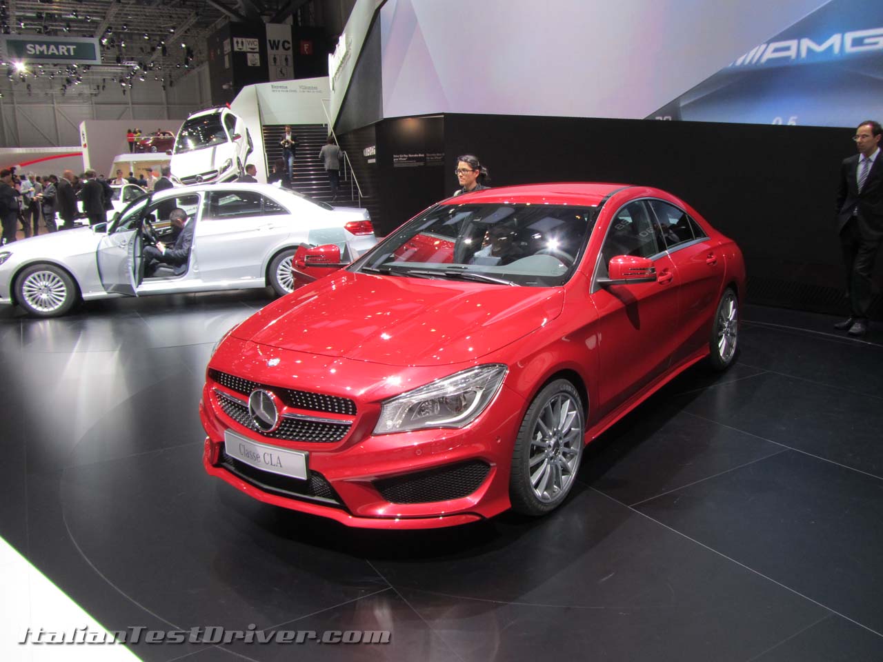 Al Salone di Ginevra, Mercedes porta al debutto la nuova Mercedes CLA, versione berlina della nuova Mercedes Classe A. Dal vivo, la CLA è una berlina vera e propria dallo stile sportivo e ricercato, come tutte le ultime vetture di Mercedes. Gli interni sono in allestimento sportivo, con sedili sportivi, volante in alcantara e cambio automatico con paddles al volante. Lo spazio interno è buono così come quello per i passeggeri posteriori. Tutte e quattro le porte non hanno la cornice intorno ai vetri per rendere la vettura ancor più sportiva, mentre il bagagliaio è ampio e ben accessibile. Grande attesa anche per la Mercedes A 45 AMG, versione sportiva della Mercedes Classe A presente anche in versione speciale “Edition 1”. La Mercedes A 45 AMG è equipaggiata con il 2,0 litri turbo AMG da 360 CV e 450 Nm di coppia, il quattro cilindri più potente al mondo. Il propulsore è abbinato alla trazione integrale e al cambio automatico doppia frizione SPEEDSHIFT DCT AMG a 7 rapporti e permette alla A 45 di scattare da 0 a 100 km/h in 4,6 secondi e di raggiungere i 250 km/h (autolimitati). La Classe A 45 AMG “Edition 1″ offre numerosi dettagli estetici di forte inclinazione sportiva, come gli inserti di colore rosso per calandra, specchietti esterni e alettone posteriore, la vernice bianco Cirrus, le stripes color grigio opaco su cofano motore, tettuccio e fiancata, le pinze dei freni rosse ed i cerchi in lega da 19” pollici AMG color nero opaco, con pneumatici 235/35. La vettura è equipaggiata inoltre con il kit aerodinamico “Night AMG”, che introduce splitter anteriori, il grande alettone al posteriore, sedili sportivi AMG e la targhetta “Edition 1” sulla plancia.