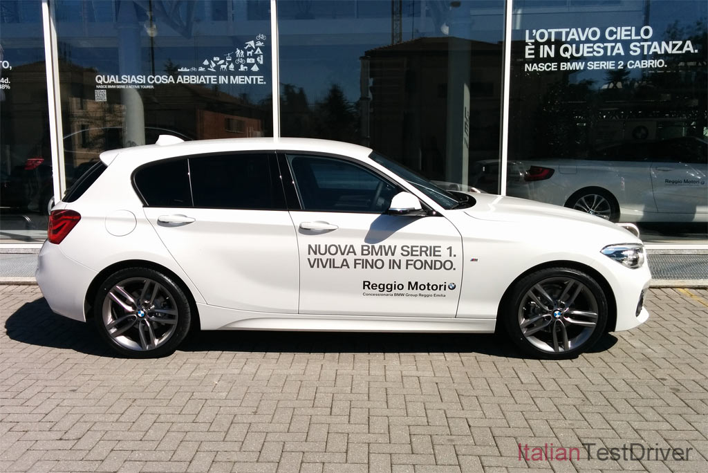All’esterno, la Serie 1 restyling è davvero riuscita rispetto al modello precedente: fari orizzontali e linee eleganti la riportano nella famiglia BMW, ed il pacchetto M Sport dona alla vettura un aspetto più sportivo grazie agli appositi paraurti anteriore e posteriore differenti, alle minigonne laterali ed ai cerchi in lega da 17″ pollici bruniti.