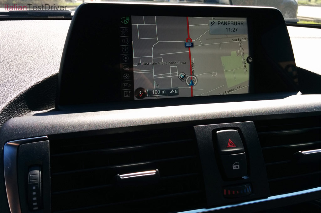 Test-Drive-BMW-Serie-1-restyling-2-interniAl centro della plancia spicca il grande schermo da 6.5 pollici del sistema di infotainment BMW ConnectedDrive, che può essere facilmente gestito dal selettore e dai pulsanti posti sul tunnel centrale, alle spalle del cambio.