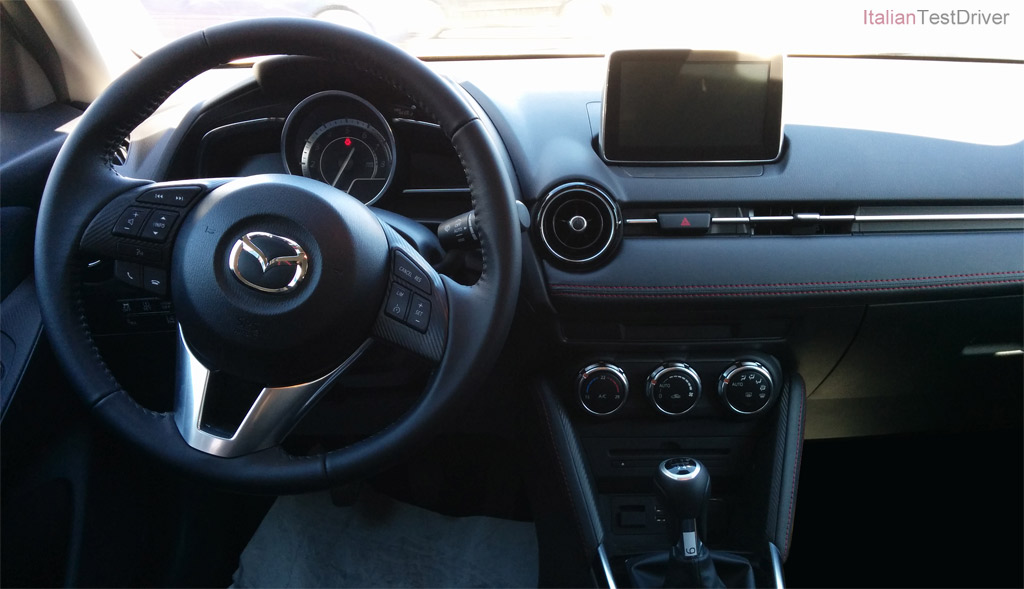 Se l’esterno non vi ha fatto capire granchè delle novità di questa “piccola” Mazda, l’interno vi chiarirà ogni dubbio. Sin dal primo sguardo, l’abitacolo della nuova Mazda 2 fa capire che no siamo sulle “solite” citycar, ma che siamo saliti su una vettura di segmento superiore. A bordo infatti, lo spazio sembra più ampio rispetto alle dimensioni esterne ed i sedili avvolgono bene gli occupanti.