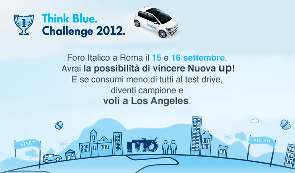 Volkswagen organizzerà a Roma l’evento Think Blue. Challenge 2012, evento ecosostenibile Patrocinato dal Ministero dell’Ambiente che si terrà a Roma il 15 e il 16 settembre, nella magica cornice del Foro italico. L’evento è “CO2 free”, ovvero che tutte le emissioni prodotte per la sua realizzazione e durante i test drive saranno calcolate e compensate contribuendo alla riforestazione del pianeta, piantando oltre 800 alberi. All’evento inoltre sarà regalato a coloro che effettueranno il test drive un albero all’interno della foresta Think Blue e saranno aggiornati sul suo stato di salute e sulla crescita. L’albero verrà piantato realmente con il nome del partecipante e si potrà seguire la sua crescita sul web e condividere con tutti la filosofia Think Blue di questo regalo speciale. Iniziato come un gioco virtuale online sulla guida ecosostenibile, diventerà realtà grazie ad un test drive che vedrà come vincitore il guidatore più attento ai consumi a bordo di una Volkswagen Up! Il concorrente che utilizzerà meno carburante nel corso delle prove al volante della up!, sarà il candidato italiano per la finale mondiale Think Blue. World Championship che si terrà il prossimo novembre in California. Tra tutti gli altri concorrenti che parteciperanno all’evento sarà estratta una Volkswagen Up! Per partecipare all’evento di Roma è basta iscriversi al sito www.volkswagen.it/thinkbluechallenge e per chi desidera allenarsi a consumare meno con la Up! è stata creata una applicazione chiamata Think Blue. Challenge 2012, scaricabile da Facebook o Appstore, per allenarsi in modo virtuale. Appuntamento quindi tra pochi giorni a Roma!